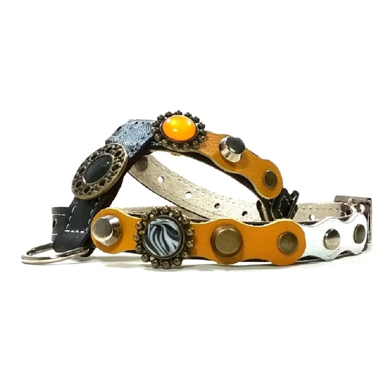 Collar De Cuero Para Perro Con Piedras Turquesas – “Bohemian Jewel”