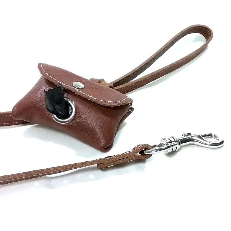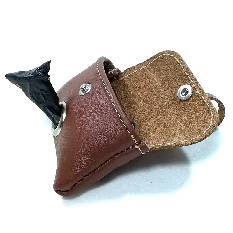 Een stijlvolle en tijdloze bruine leren poepzakhouder voor hondenbezitters met een warme, elegante en klassieke smaak. Deze modieuze dispenser houdt het zakjesrolletje netjes opgeborgen en eenvoudig te vervangen. Dankzij de stevige drukknoopbevestiging kan de houder veilig aan een hondenriem, handtas of broekriem worden vastgemaakt. Handgemaakt van premium leer met Zamak hardware en perfect afgestemd op onze halsbanden, tuigjes en lijnen.