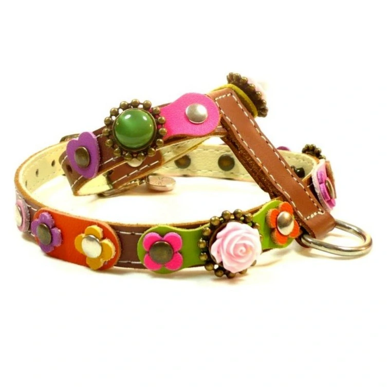 Leather Dog Leash With Colorful Flowers & 3D Roses – “Rosy Deluxe”
