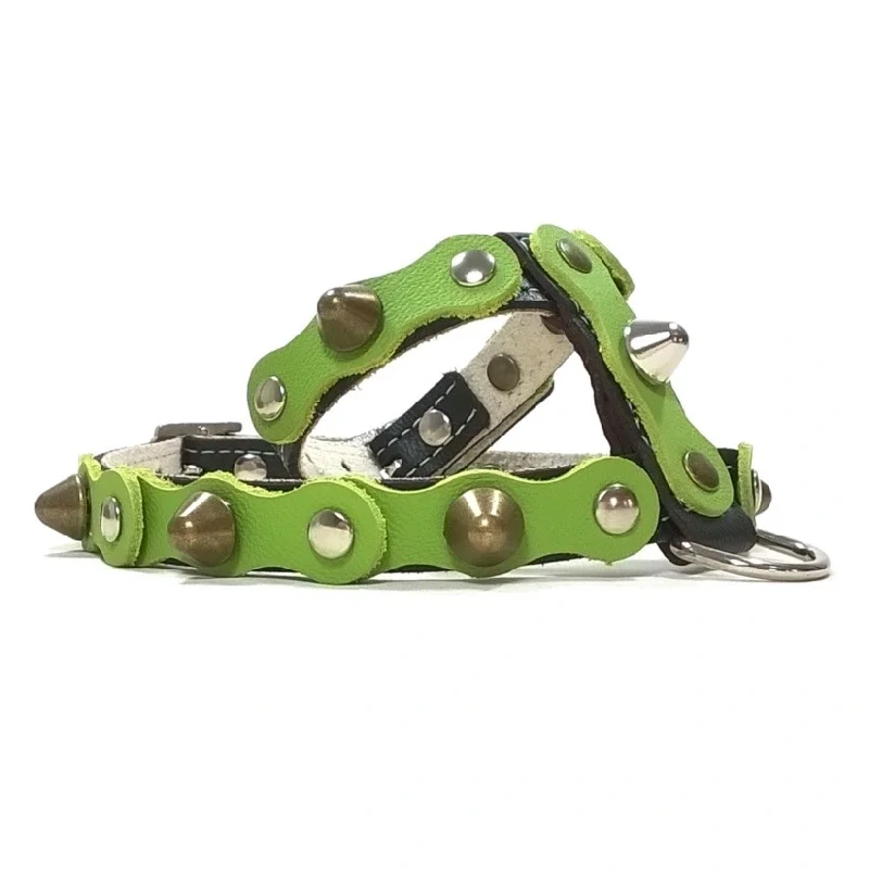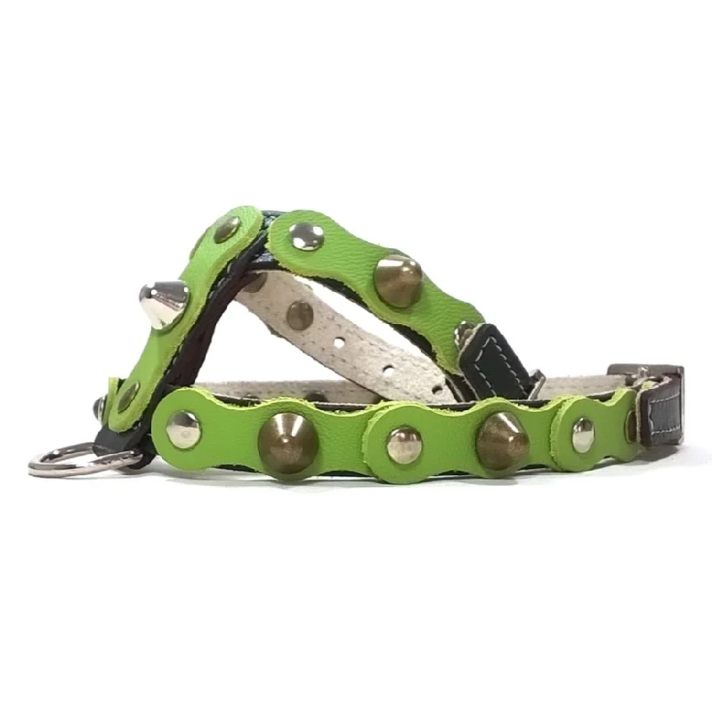 This green studded leather harness brings an outdoorsy, adventurous vibe to every walk. Ideal for dogs with a brave and energetic personality, it combines premium craftsmanship with a striking natural tone.