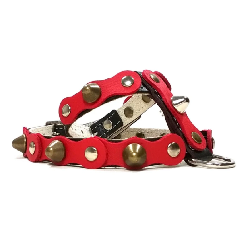 This red studded leather harness delivers a fierce, confident look. Perfect for dogs with a daring personality, it blends premium craftsmanship with a colour that commands attention.